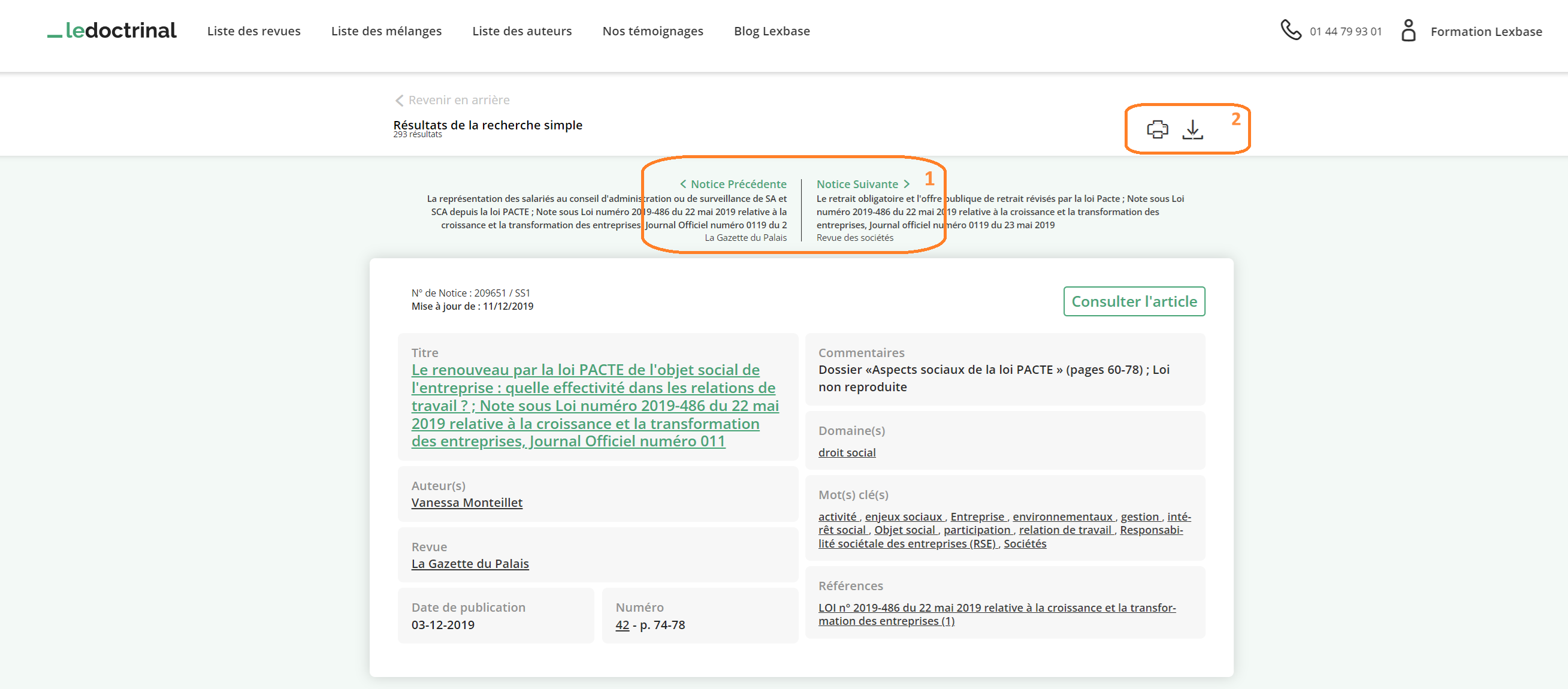 Le Doctrinal est "Zoterable" : utilisez Zotero pour récupérer les informations bibliographiques d'une notice de revue.